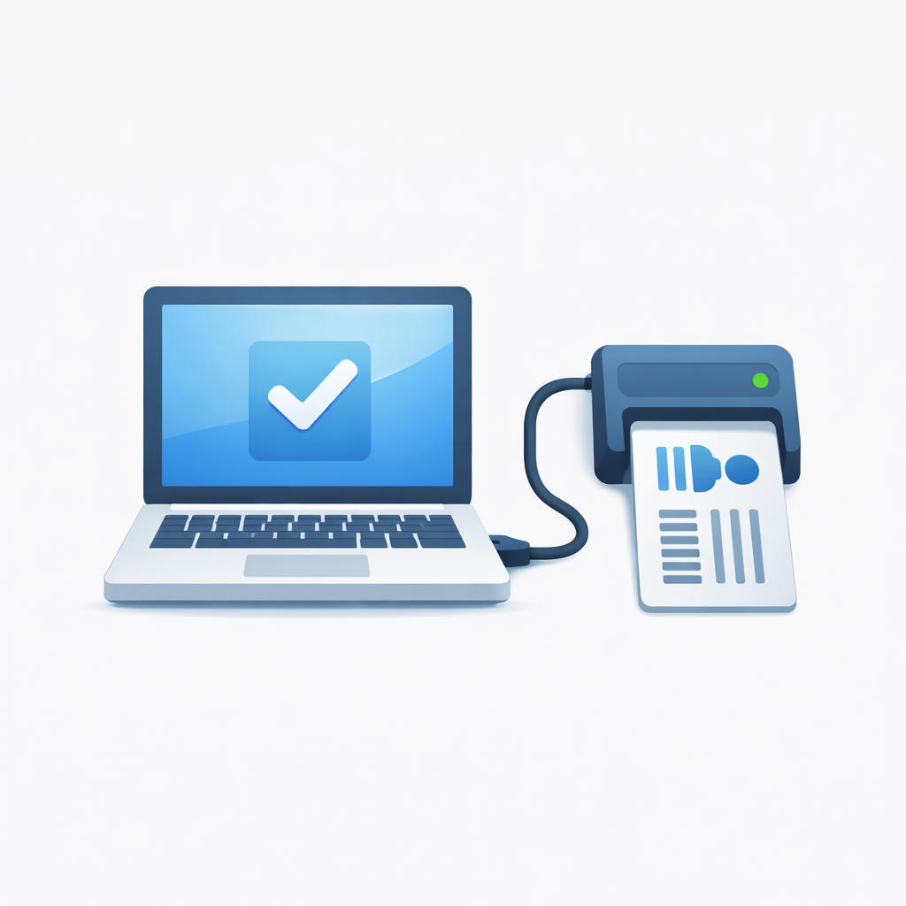 Bilgisayar ve kart okuyucu ile hızlı kurulum yapılır.